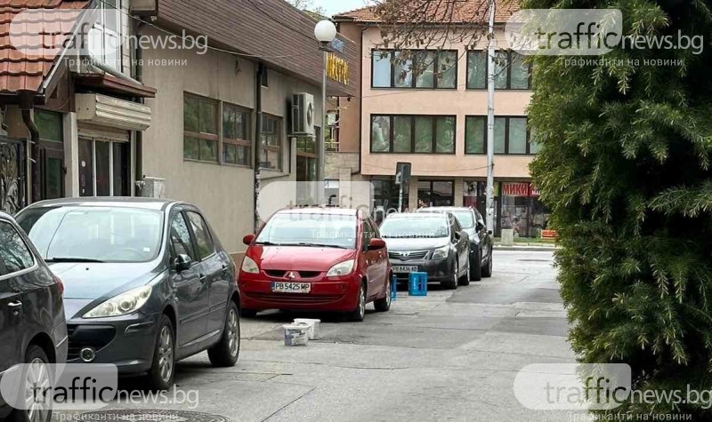 На вниманието на полицията: Пловдивчани превърнаха улица в своя собственост, пазят паркоместа с туби