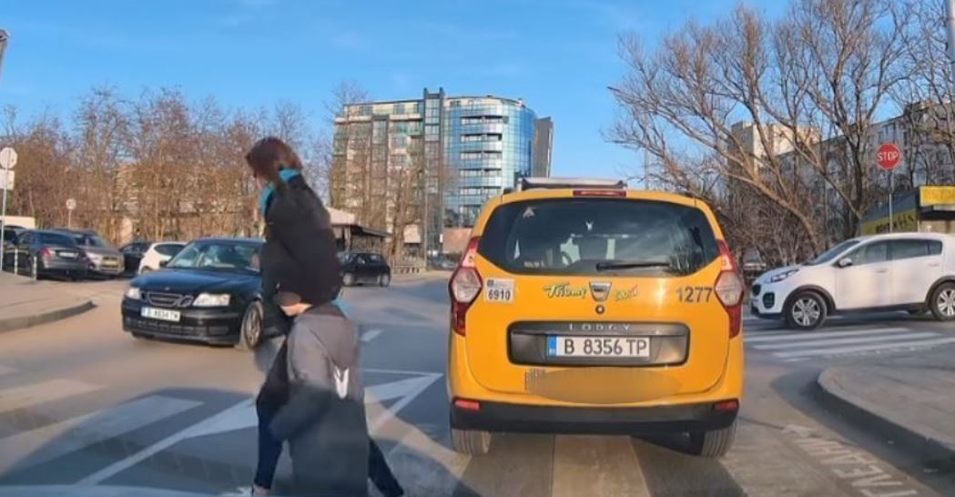 В сектора има и спрян таксиметров автомобил, който в допълнение затруднява видимостта на участниците в придвижването.