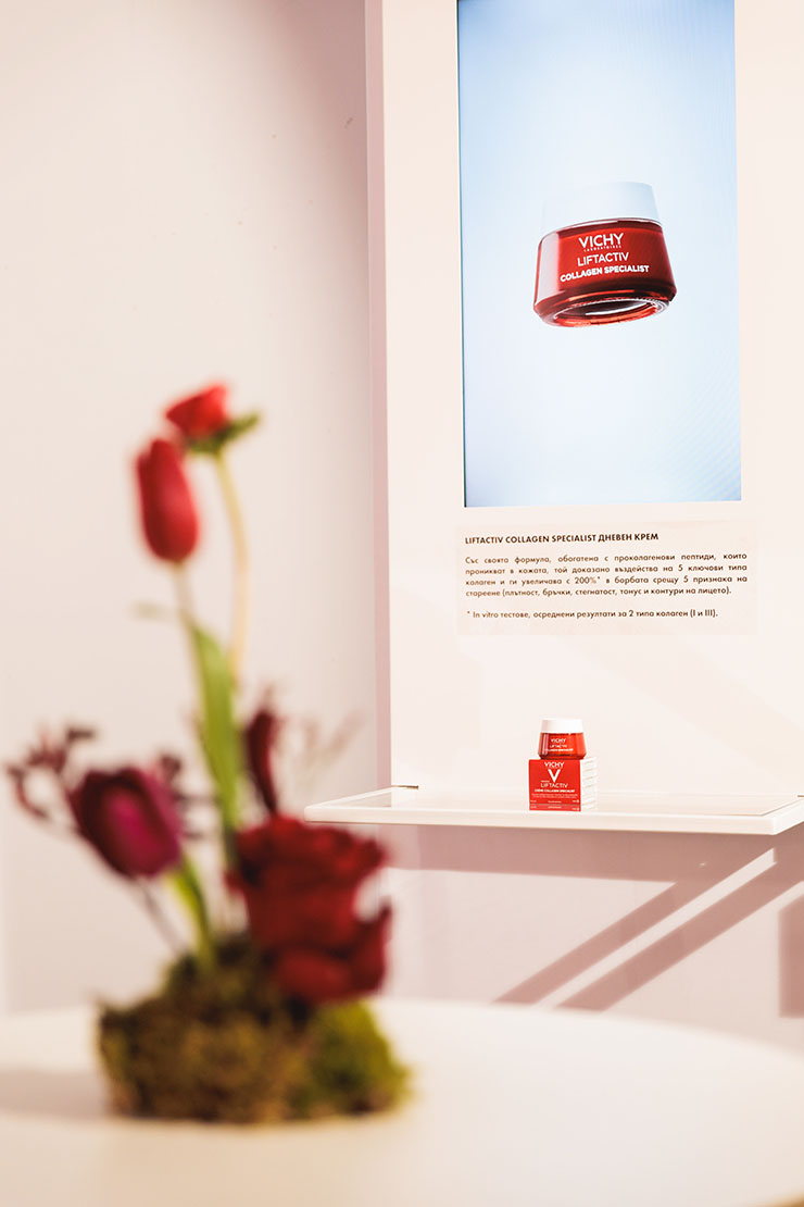 За благополучие решението на този проблем съществува – в съдействие с топ специалисти, Vichy създаде неповторимата формула на крем Liftactiv Collagen Specialist за ежедневна грижа за кожата. Той съдържа проколагенови пептиди и се оправя с 5-те признака на стареене на кожата: загуба на компактност, бръчки, загуба на сбитост, тонус и разпределяне на контурите на лицето.За да приближи протеинът супергерой по-близо до хората, Vichy провежда неповторимо събитие в София нощес, по време на което гостите имаха опцията да схванат повече за прекарването “колаген ”. Събитието събра лекари, фармацевти, близки медийни сътрудници и инфлуенсъри от България. Сред присъстващите бяха доста известни персони, измежду които посланиците на марката за линията Liftactiv, част от които са - Йоана Димитрова, Ева Веселинова, Симона Дянкова, Теодора Цветкова, Силвия Йорданова, както и други инфлуенсъри и посетители. Задушевната атмосфера беше в допълнение подсилена от магичния глас на известната районна звезда Маги Джанаварова.