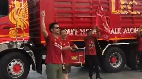 Оказа се, че един предан ентусиаст на мърсисайдци от Тайланд още преди спирането се е бил подготвил да направи спонтанен церемониал за купата. Той си купил огромен камион с ремарке, които дори били брандирани в цветовете и емблемата на Ливърпул. Партито с огромен брой локални почитатели било квалифицирано в очакване на заветния момент.
