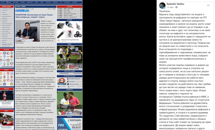 Започнах работа в ЦСКА като стажант по времето на Томов, само че след 2009, когато напусна клуба не съм го виждал. Работил съм с всички останали притежатели досега и с никой от тях не съм бил непосредствен. А за борбата ми с Томов след 2013г. знаят доста от последователите на ЦСКА. Споменатите от клеветниците каузи са с сполучлив свършек за клиентите ми, съгласно проекта ни (Джопето и Щангите), само че те това ще го кажат в съда. С Любо Пенев съм в прелестни връзки, а той загуби конгреса, тъй като мафията в БФС фалшифицира вота по жесток метод. Между другото Красен Кралев пристигна на този конгрес да каже какъв брой добре работи с БФС!
