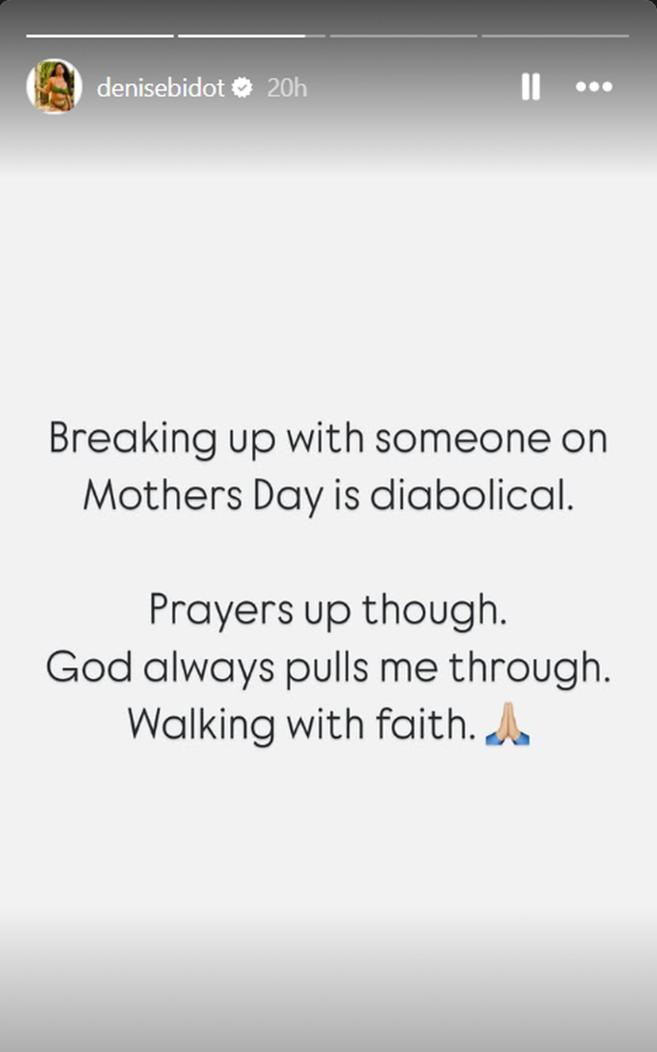 38-годишната Бидот разгласява изказване в Instagram Stories в неделя, в което твърди, че 42-годишният рапър е прекратил връзката им по извънредно безсърдечен метод.