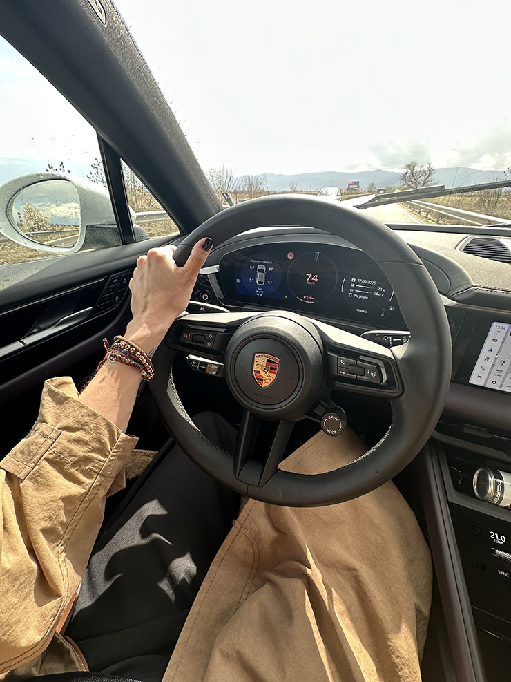 Първото ми усещане? Убедила съм се, че във всеки модел на Porsche чувството е разпознаваемо, отличаващо се и характерно. Но в Macan 4 се усещам еднообразно удобно, както във всеки различен модел на марката. Изкушаващо удобно. Поведението на пътя и качествата му са присъщи на един състезателен автомобил. С ТОК Пожарна охрана МАГИСТРАЛАТА И В ПЛАНИНАТА Електрическият мотор - главното ми любознание беше ориентирано към него. Признавам, че непрекъснатата игра с ограничаването на скоростта (без да сме я превишавали, схваща се), както и изкачването по стръмните планински завои ме притесняваше - никаква визия нямах по какъв начин това ще се отрази на литиево-йонната батерия. Тя зарежда електрическия мотор и е позиционирана в подподовата структура на автомобила. Пробегът съгласно стандарта WLTP е до 643 км. В новия Macan Porsche за първи път употребява новата високотехнологична платформа Premium Platform Electric (PPE) с 800-волтова архитектура. Батерията може да бъде заредена от равнище на заряд 10% до 80 % в границите на почти 21 минути благодарение на подобаваща зарядна станция за бързо зареждане.
