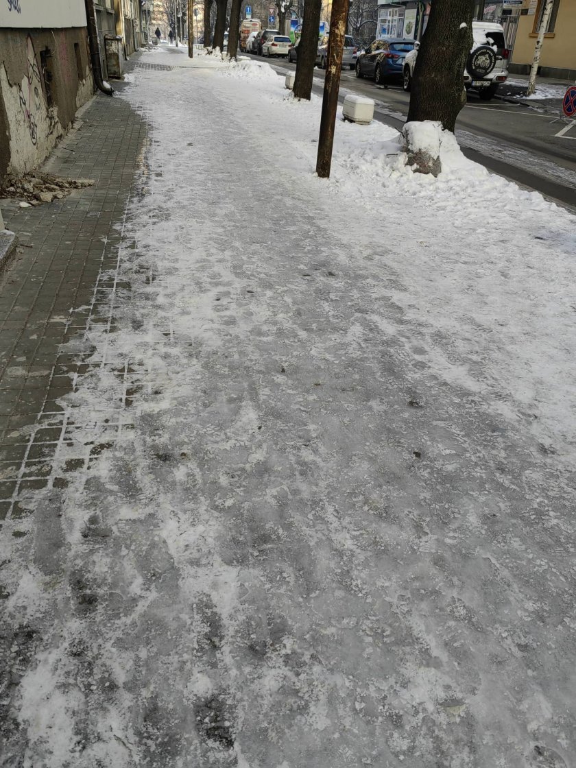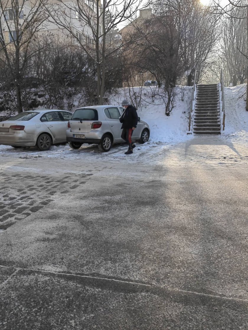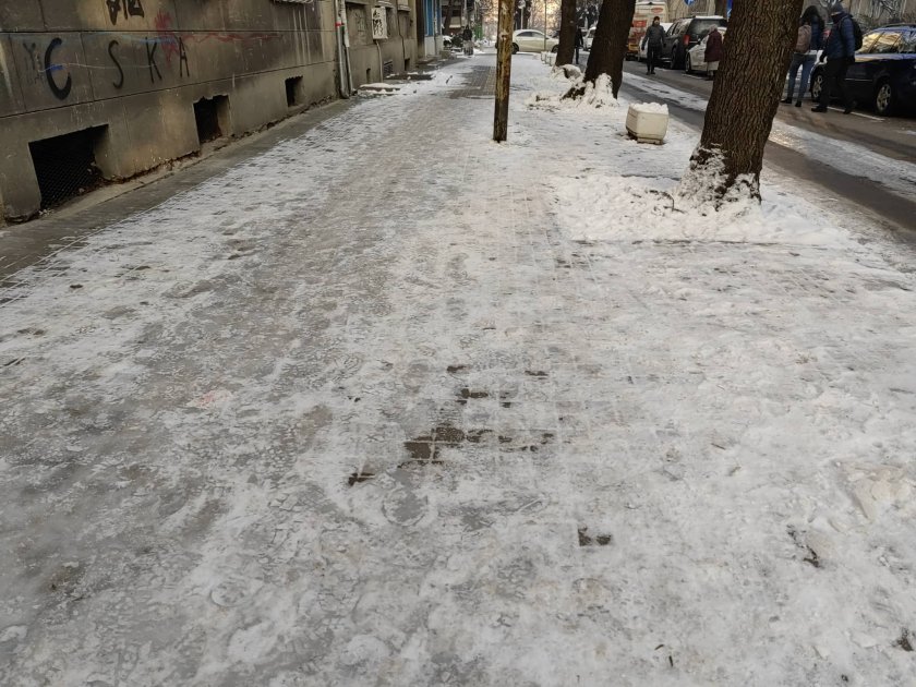 Ледът дотам е пуснал пипалата си на всички места, само че за сметка на това и домоуправителите на кооперации и блокове в София не намират за нужно да провеждат почистването на тротоарите и пътеките към входовете си.