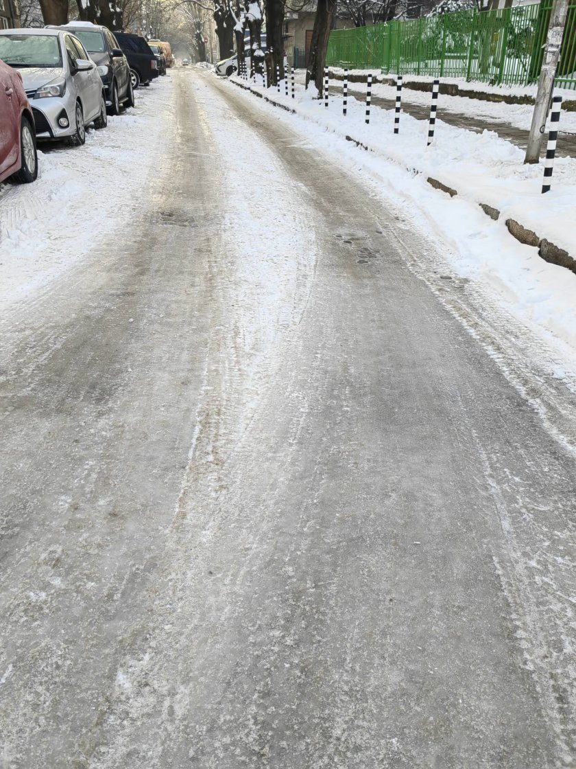 На доста места тротоарите остават непочистени, както и дребните квартални улички, които са се трансформирали в улеи за бобслей и колите мъчно се ръководят, а какво остава и да стопират гладко.