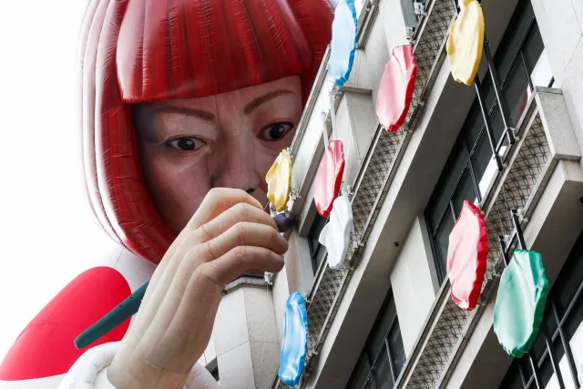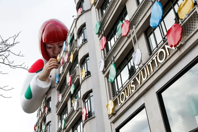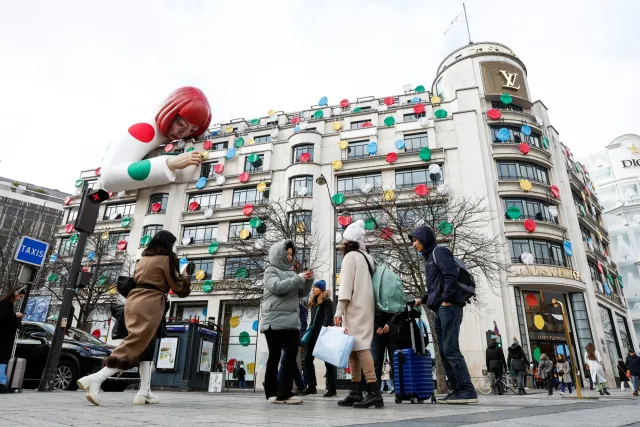 Прочут магазин на бул. " Шанз Елизе " в Париж беше видоизменен в платно на японската художничка Яой Кусама.