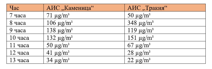 Пикова стойност от 138 µg/m3 е измерена към 9ч. Тази заран от станцията в „ Каменица “, а в „ Тракия “ най-завишена стойност 151µg/m3 е записана в 10ч. Това са средночасовите измерени концентрации по индикатор ФПЧ10, като би трябвало да се има поради, че средноденонощната норма за запазване на човешкото здраве е 50 µg/m3.