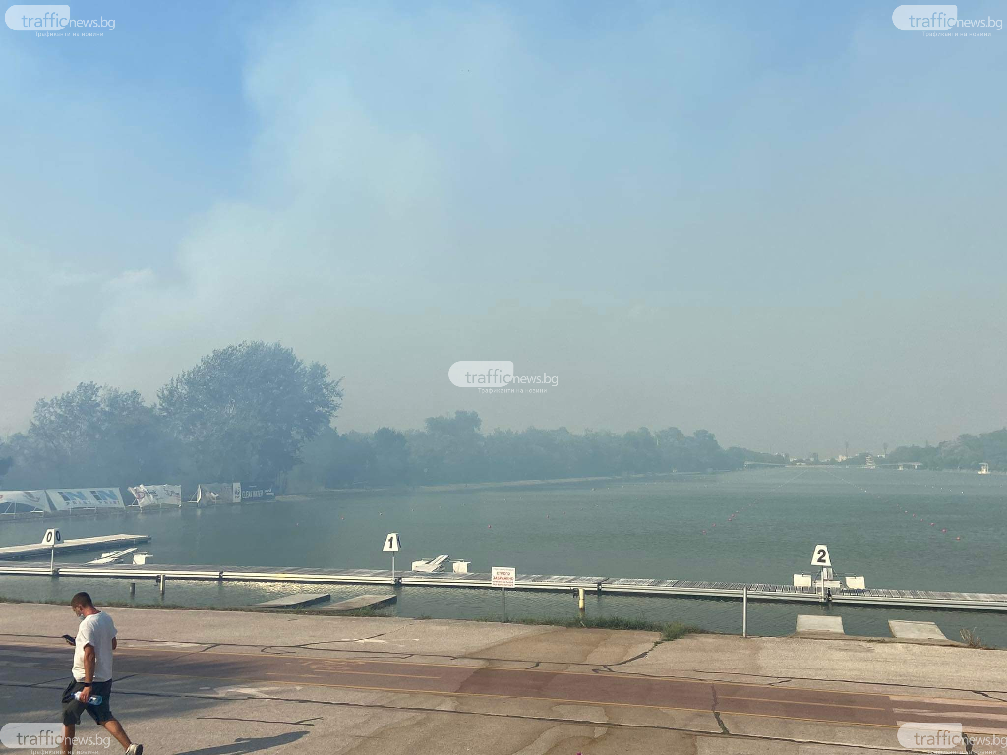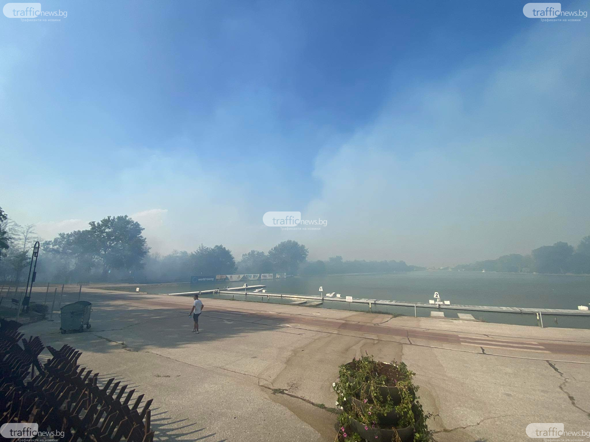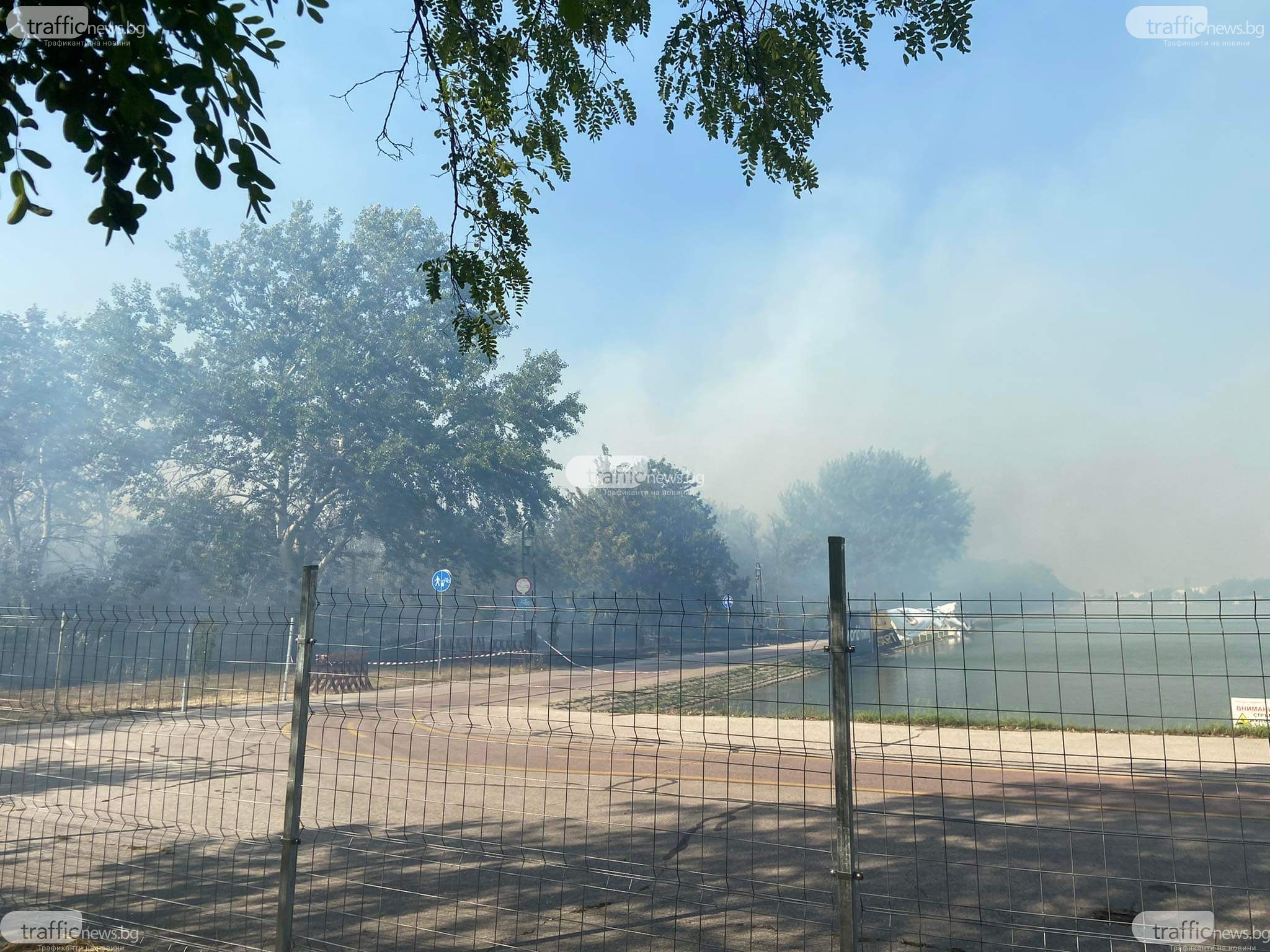 Продължава гасенето на пожара, който бушува на Гребната база в Пловдив. Димна завеса е обхванала целия регион, като към този час не се позволяват жители към канала. Пожарът гори наоколо до хотел „ Лендмарк ”, а по-рано бяха евакуирани и гостите на хотел „ Острова ”.