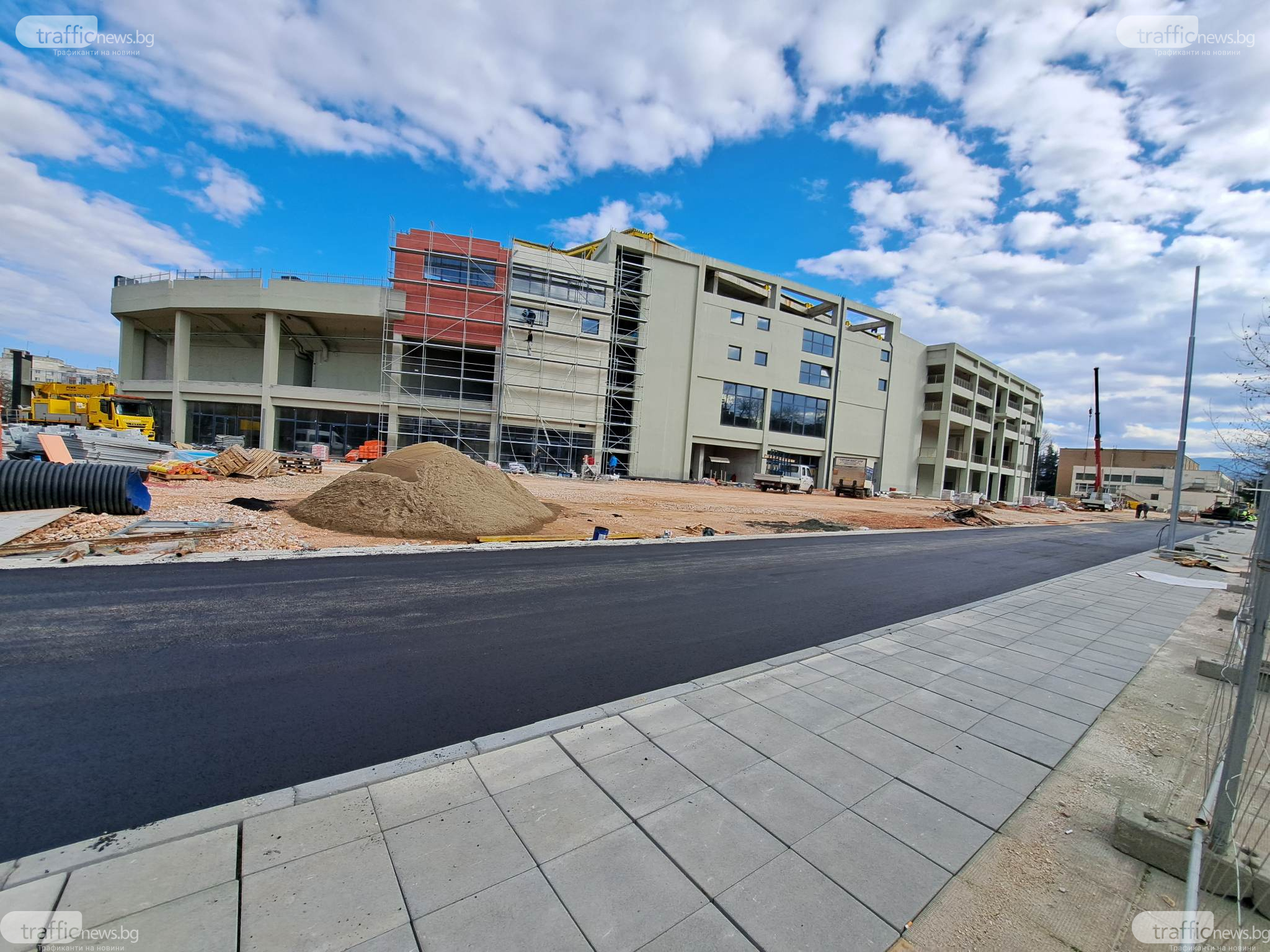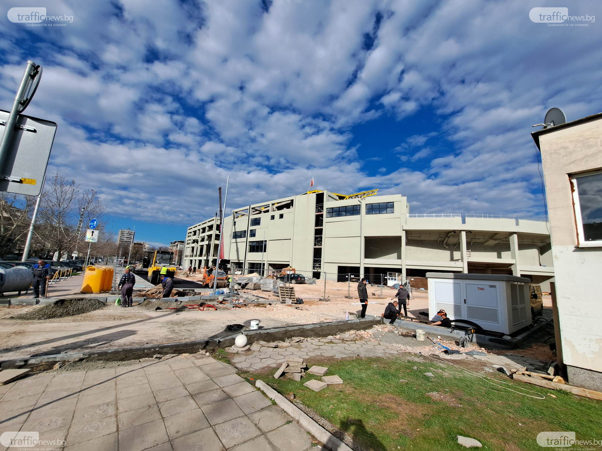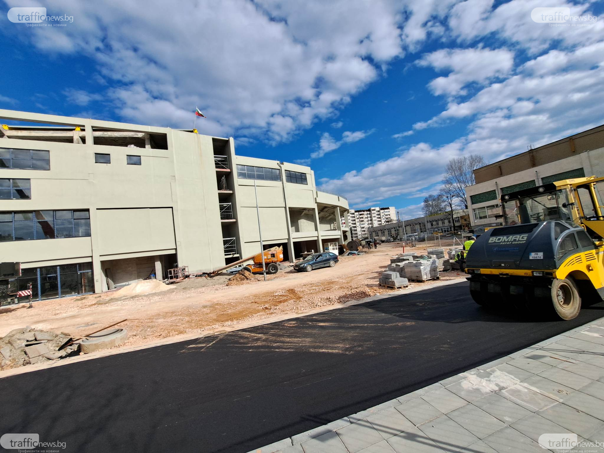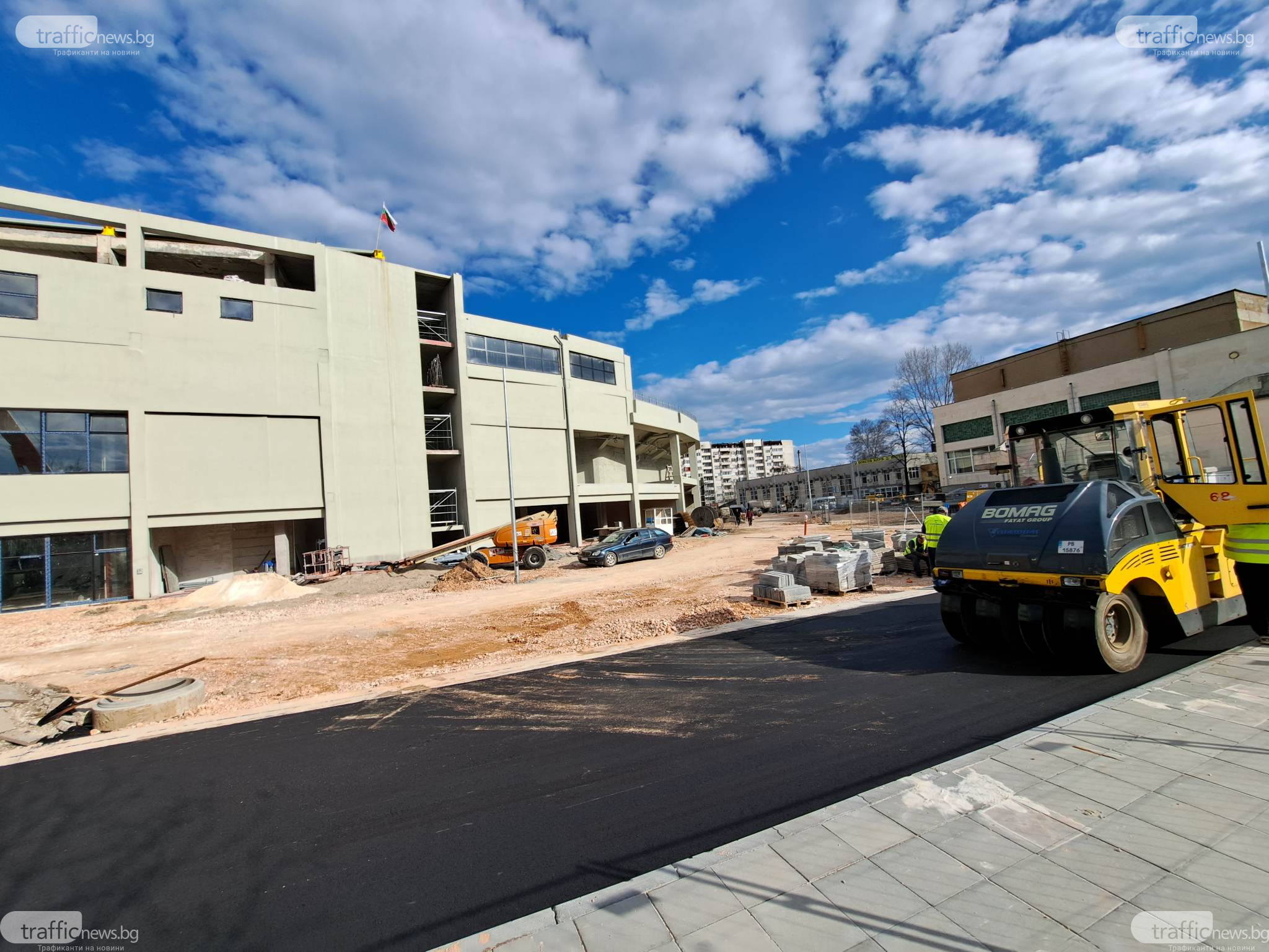 Работи се и към паркоместата и инфраструктурата към стадиона. Започна и асфалтирането пред централната естрада.