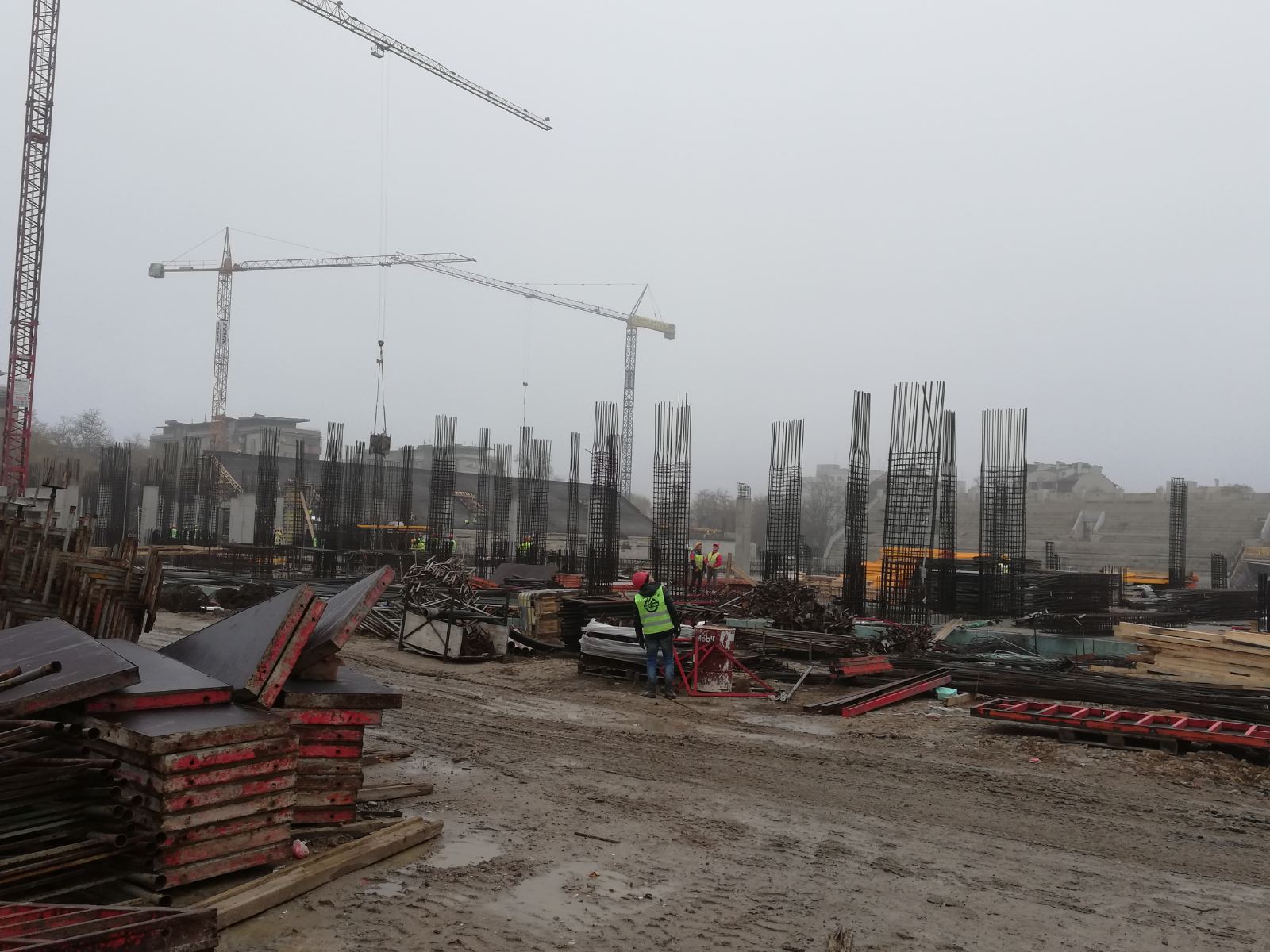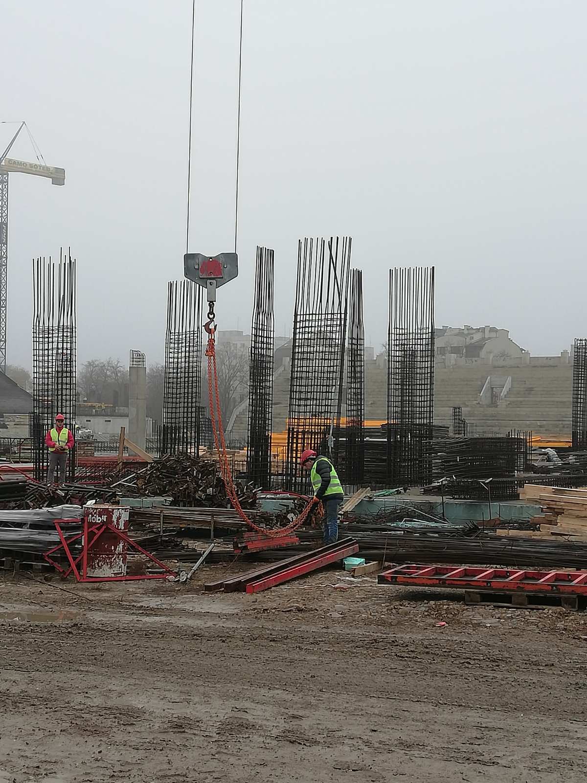 Продължава сериозната работа по стадион " Христо Ботев " в Пловдив, видя кореспондент на Sportal.bg . След като през последните седмици строителните действия бяха ориентирани върху естрада " Север ", в този момент работата на служащите е съсредоточена върху Сектор „ А “ на „ Колежа “, като сега се построяват носещите колони. На централната естрада е и по-голямата част от служащите, трудещи се на строителната площадка.