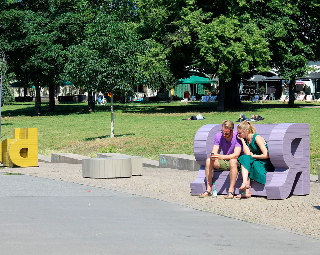 Пейките с формата на букви от кирилицата са показани още в Будапеща и в Пловдив. Три от пейките са подарени на Къщата за литература и превод в София, акцентира Радева: