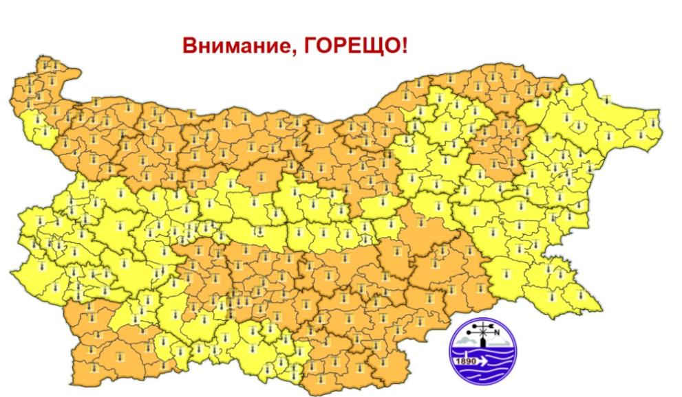 Внимание, горещо! Високите температури при оранжев код могат да доведат до здравни проблеми за чувствителни и заболели хора, възрастни и деца. Следете прогнозите и действайте съгласно препоръките на управляващите. Ето картата за 26 юни: