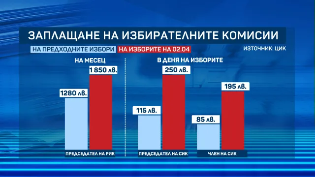 За работата си на 2-ри април, ръководител на Секционна изборна комисия ще получи еднократно 250 лева, като до момента възнаграждението е било 115 лева