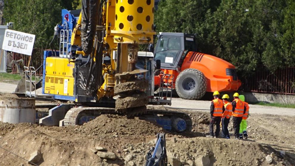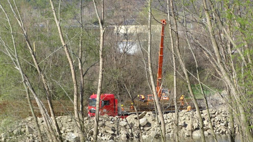 Пилотна машина пробива отворите са основите на новото оборудване, за задачата е променено руслото на р. Струма.