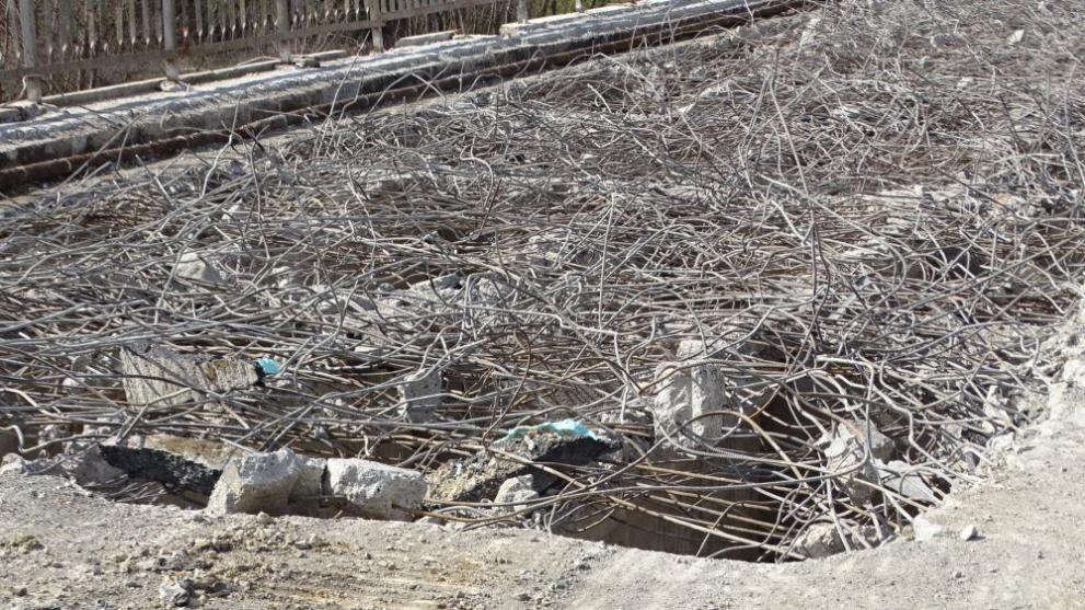 БГНЕС За две седмици работа е отстранена асфалтовата настилка, изцяло разрушено с хидравличен чук е и дъното на моста, останала е единствено арматурата.