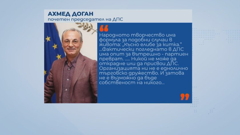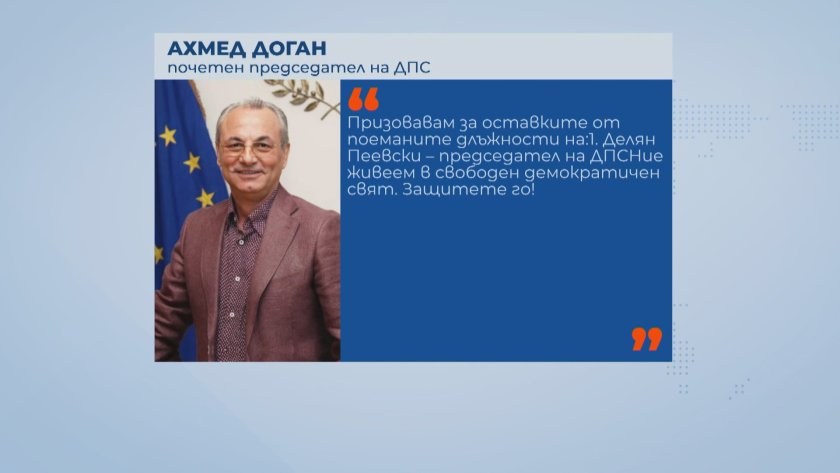 " Голяма част от хората още през вчерашния ден взеха да се обаждат, споделят апела на почетния ни ръководител на лекар Ахмед Доган, както и ние споделяме. Това, за което той приканва - да се освободим от страха, да застанем на висотата на нашите отговорности и демократични правила в партията и стабилността в страната, и в интернационален проект да бъде възобновена ", разяснява Джевдет Чакъров - ръководител на Движение за права и свободи.