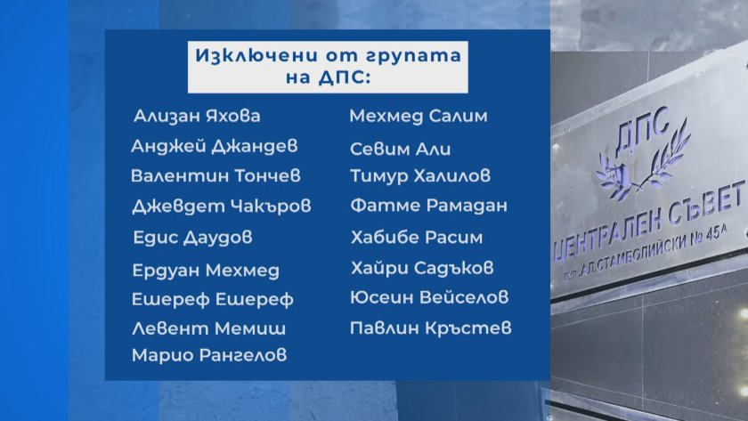 Тази заран от групата на Движение за права и свободи бяха изключени 17-те депутати, които бяха на среща при почетния ръководител Ахмед Доган в " Росенец ". Сред тях е и ръководителят на придвижването Джевдет Чакъров.
