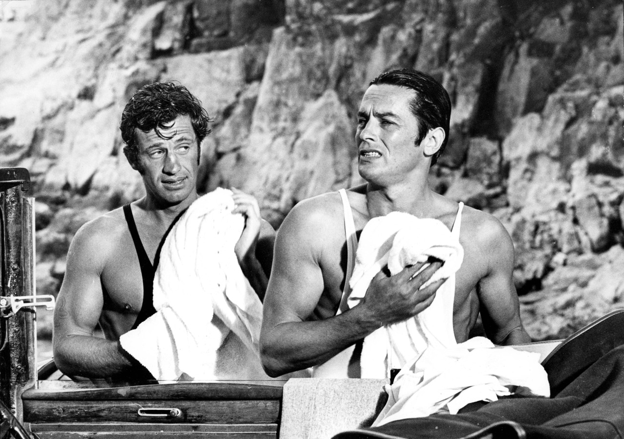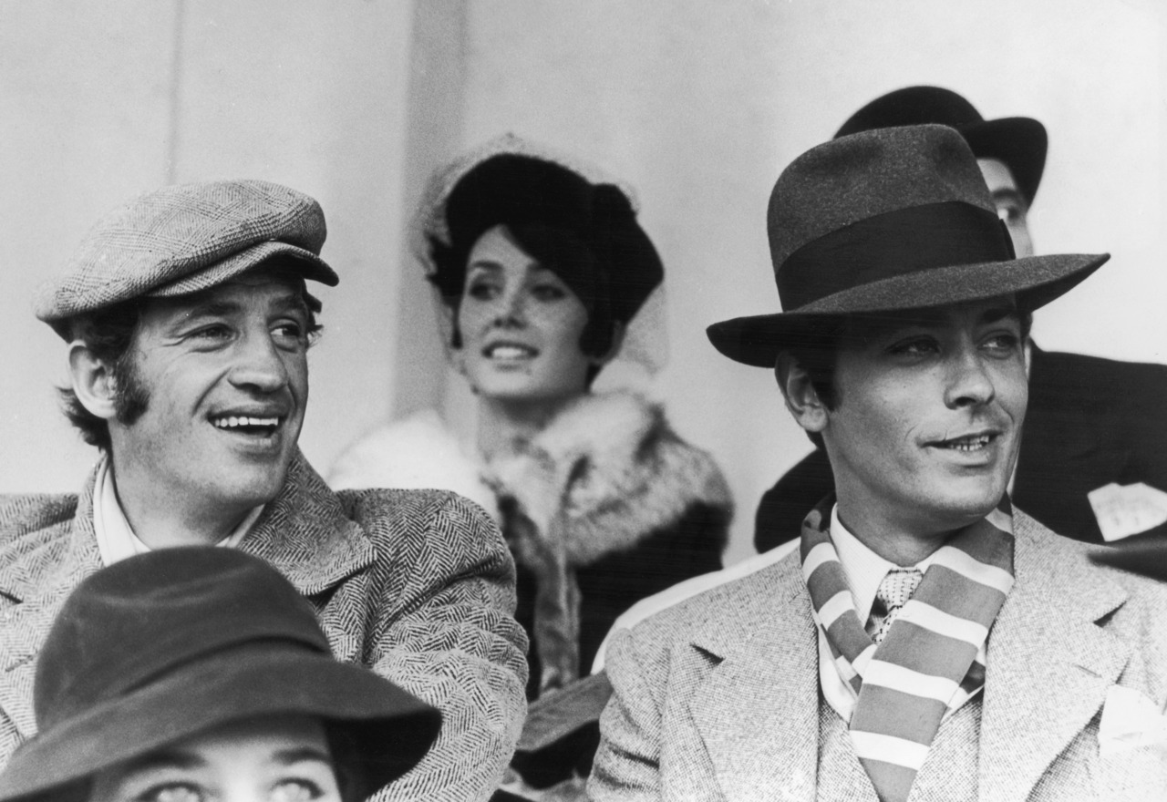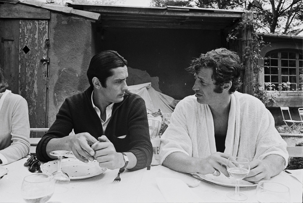 Alain Delon and Jean-Paul Belmondo on the set of Borsalino directed by Jacques Deray, 1970