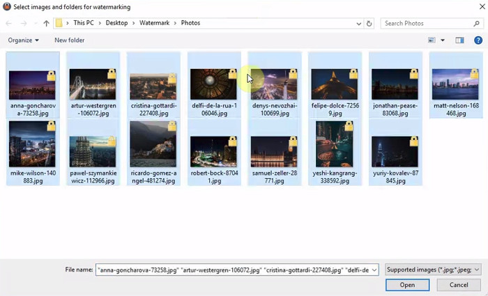 Бързо прибавяне на воден знак към стотици фотоси