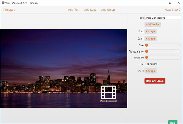 Visual Watermark ви разрешава да добавите воден знак към портретни, пейзажни и изрязани фотоси в пакет. Програмата автоматизирано настройва размера и позицията, с цел да сложи добре изглеждащ воден знак на всяко изображение.