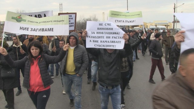 Производители на плодове и зеленчуци от цялата страна излязоха на митинг. Близо 300 души блокираха за малко кръстовището пред граничния пункт " Дунав мост " при Русе.