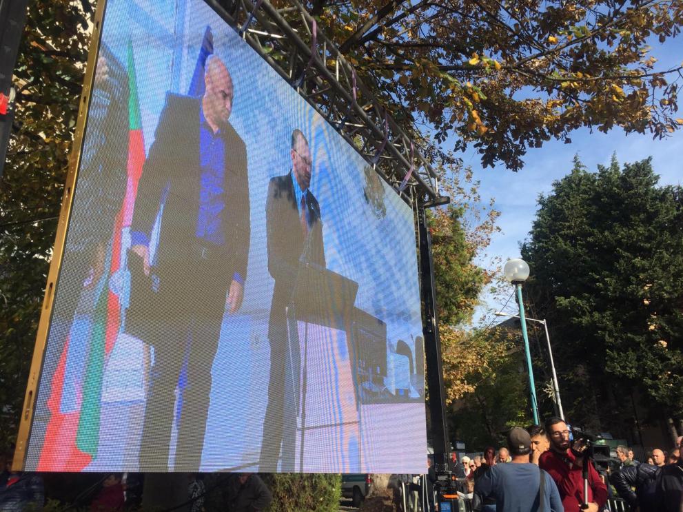 Сесията е без казус в политическата ни история - кметът, арестуван дни преди изборите , бе доведен под ескорт, с цел да постави клетва , а отвън-близо 1000 души следиха церемонията на видеостена и скандираха Невивен.-->