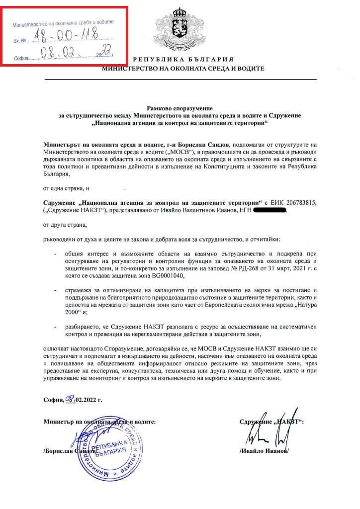 Прокуратурата и службите би трябвало неотложно да ревизират кое е лицето, входирало Споразумението сред Министерството на околната среда и водите и Националната организация за надзор на предпазените територии на Ивайло Калушев.
