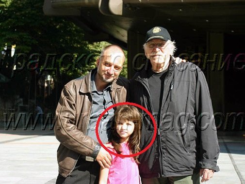 Внучката с баща си Иво Стайков и Джоко Росич на снимачната площадка на кино лентата " Пъзел ".