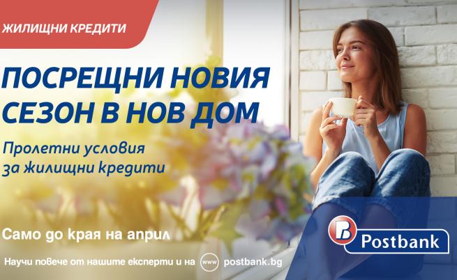 Замисляш се за нов по-просторен апартамент, къща в покрайнините на града, или ново жилище в морски комплекс, с цел да уредиш съвършената отмора за теб и твоето семейство? С новия сезон Пощенска банка ти дава чудесно финансово решение, което да ти помогне в сбъдването на фантазията ти за личен дом - жилищен заем със специфични условия. С оптимален размер до 700 000 лв., период на погашение до 35 години, алтернатива за финансиране до 85% от пазарната оценка на парцела и промоционалното предложение, с което в интервала до края на месец април ще можеш да спестиш от първичните разноски, свързани с финансирането на новия ти дом, като се възползваш от възобновяване на разноските за основаване на ипотека в размер до 500 лева