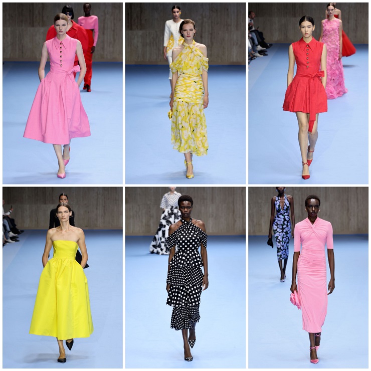 Изберете риза-рокля или обвиваща рокля в безпристрастен цвят. Съчетавайте с минималистични бижута и комфортни обувки. Добавете тренчкот или блейзър за непреднамерено софистицирана визия. Ретро Ретро вдъхновението е застъпено в сбирките на Dolce&Gabbana и Carolina Herrera. Dolce&Gabbana показва рокли, въодушевени от стила на Мадона, с композиция от дантела, металически акценти и смели силуети. Carolina Herrera залага на черно-бели комбинации с полка точки и ярки цветове като розово, алено и жълто, придавайки прохлада на класическите тематики.