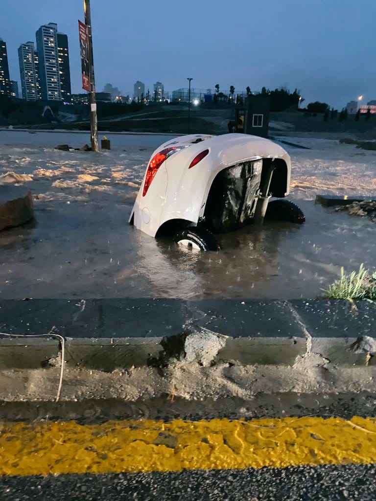 След преваляванията градът е под вода, а колите безусловно плуват по улиците.