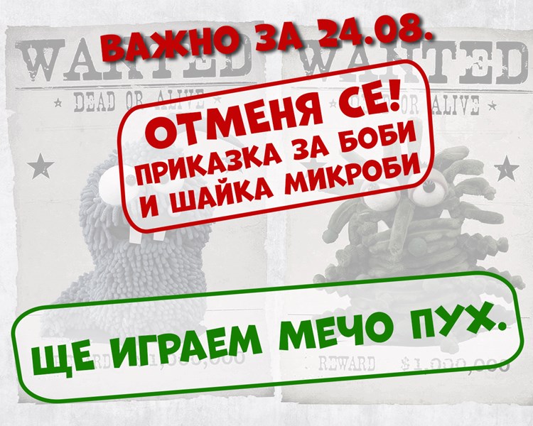 На 24 август от 11:00 часа вместо оповестения театър " Приказка за Боби и тайфа микроби " ще бъде показана постановката " Мечо Пух ". Това е първото зрелище за новия сценичен сезон 2025/2026, което театърът планираше да открие с просветителната режисура за хигиеничните привички.