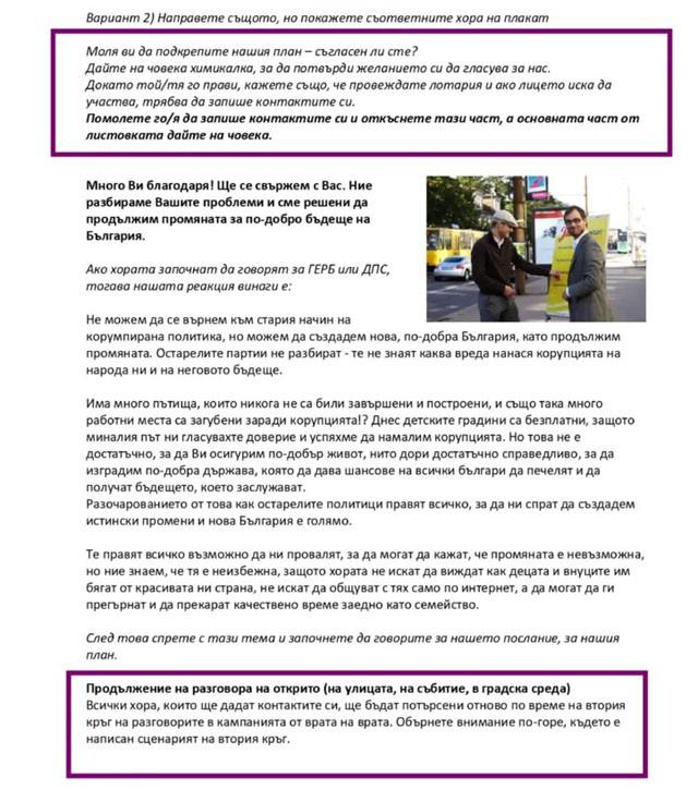 „ Промяната ” с нов гаф: подреждат на структурите по места да събират имена, адреси, рождени дати, телефони, да търсят гласоподаватели по домовете и да провеждат противозаконни томболи с награди