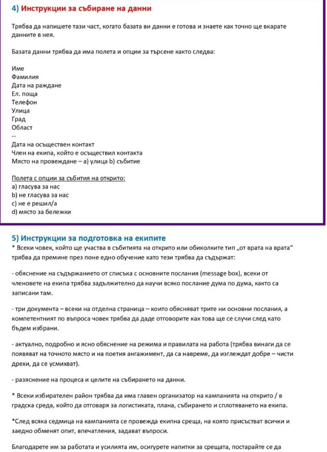 Документът от 12 страници е абсурден, тъй като посредством него централният избирателен щаб на Промяната подрежда на деятелите си от цялата страна да правят дейности, които са в прорез с най-малко два закона – Закона за персоналните данни и Изборния кодекс.