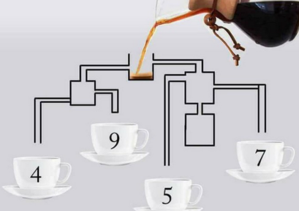 За да стигне кафето до избрана чаша, би трябвало да мине през тръбна система и въпросът е до коя ще доближи първо?