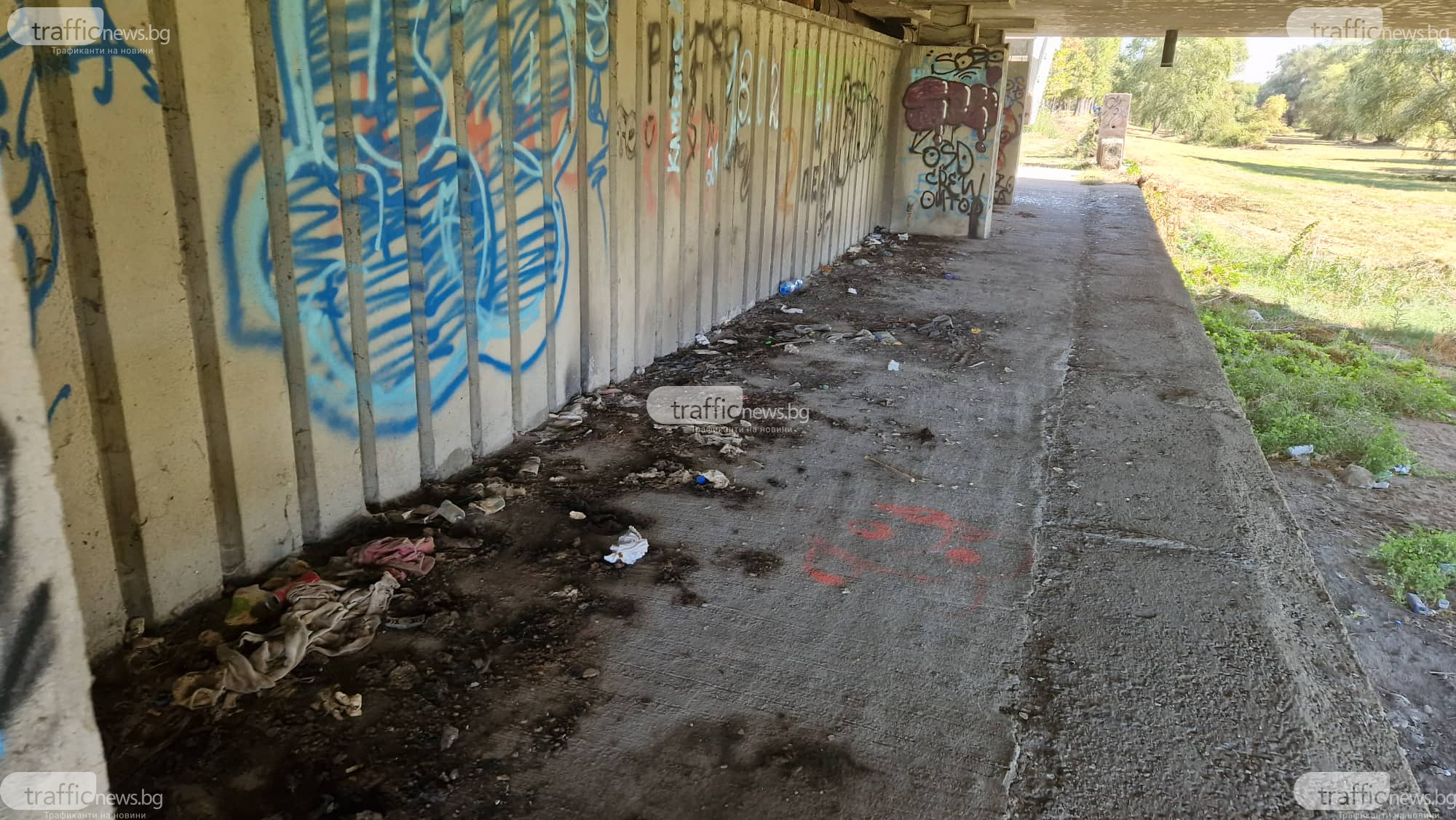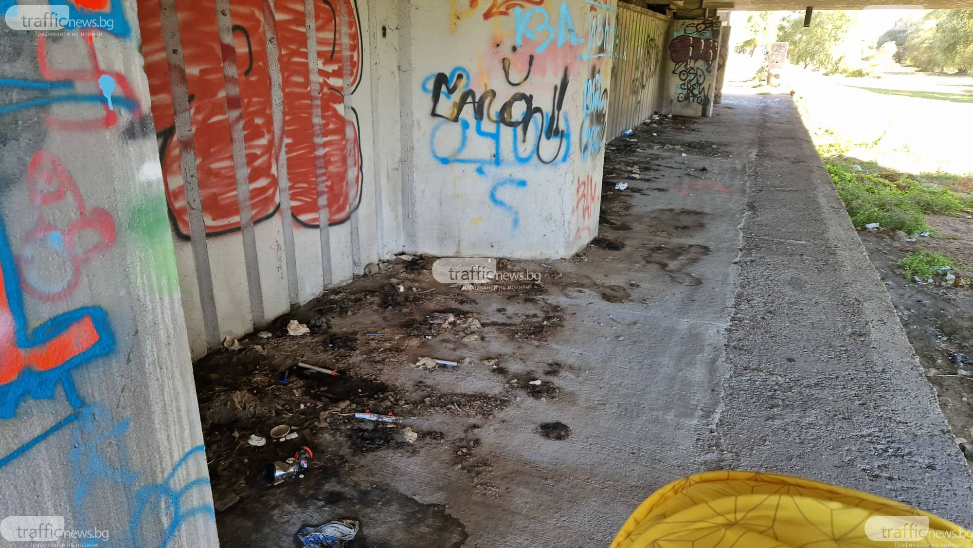 Под мостовете в Кършияка: Импровизиран дом за бездомни и наркомани, тънещ в мизерия