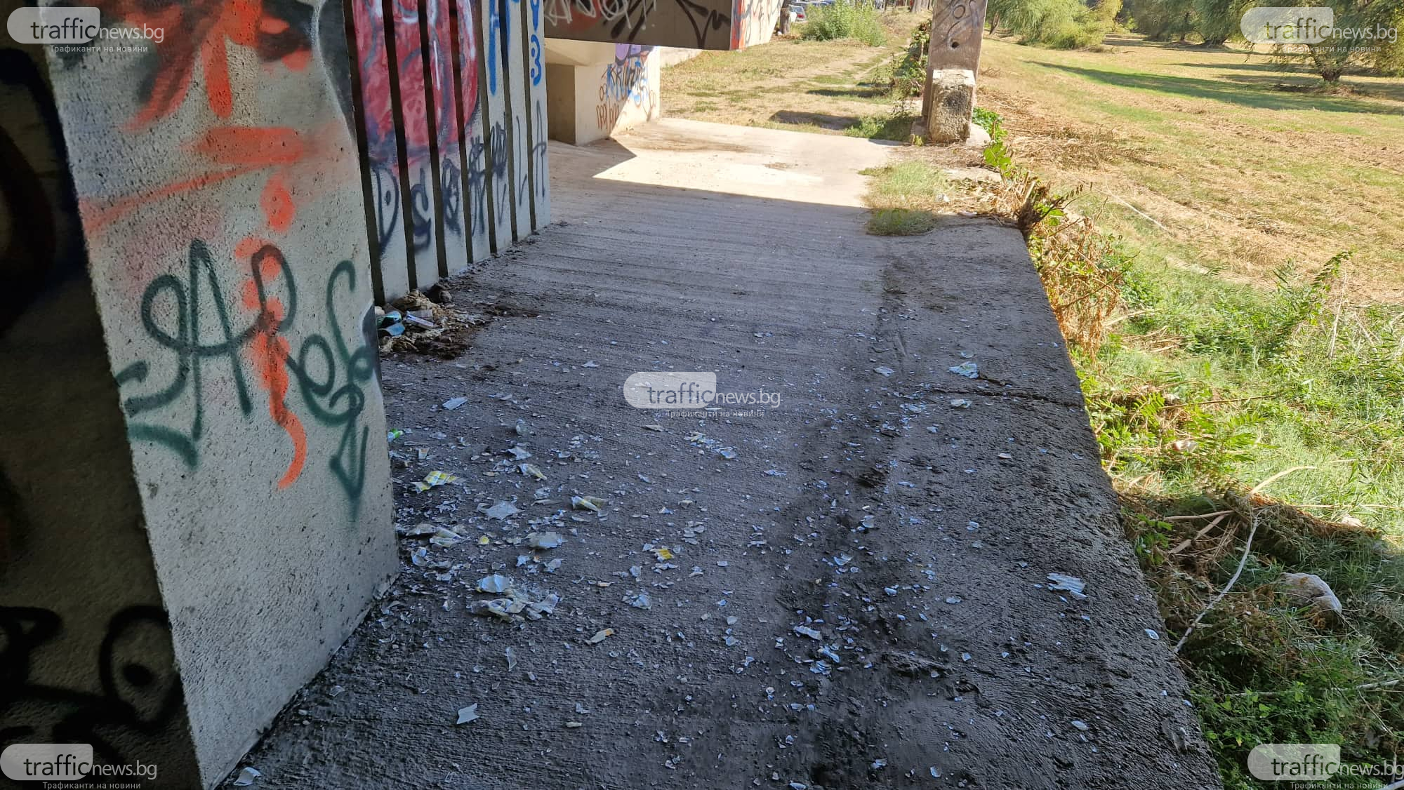 Най-редовно можем да забележим разпилени спринцовки, кондоми, хартии, облекла, шишета и други леснозапалими боклуци, а преминаващите през моста, както и под него, постоянно хвърлят фасове, които са в основата на огромна част от пожарите. Принуден си да минаваш през боклуците, тъй като от другата страна е невероятно да се мине.