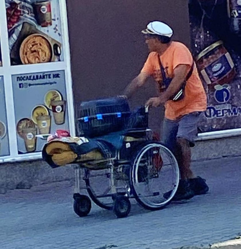 „ Просяк-инвалид ” проходи в центъра на Варна, отправяйки се към " работното си място ". Мъжът, който моли за лепта, самичък си бута инвалидната количка, от която събира пари. Мъжът си вози и дунапрените, в които увива сякаш лисващия си крайник, видя Lupa.bg.