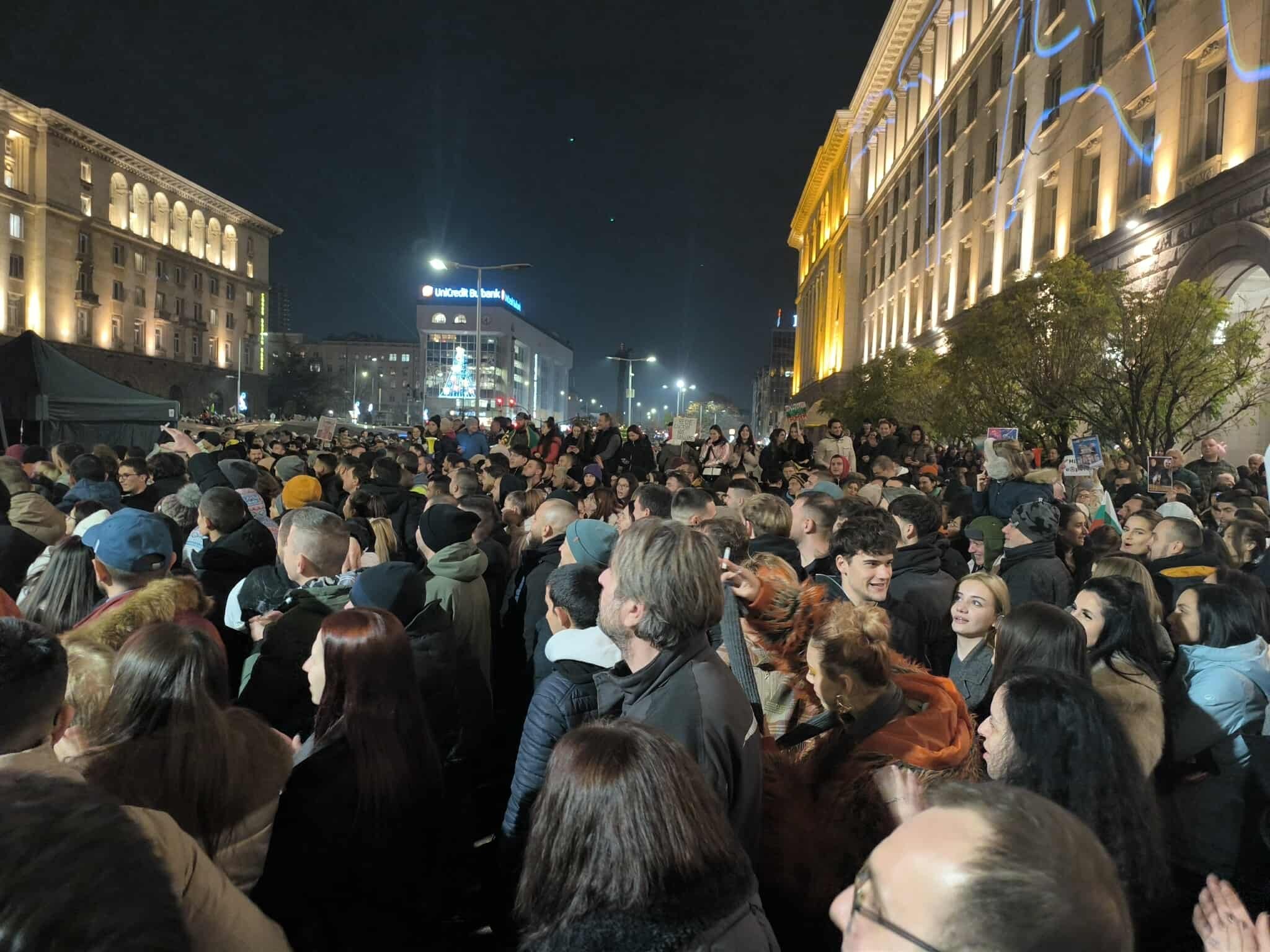 В първите минути на митинга правеше усещане, че улиците към триъгълника на властта са цялостни с хора, които се стичат към митинга. Дори час и половина след началото на негодуванието огромни тълпи се стичаха от Софийский университет към площада в триъгълника на властта.