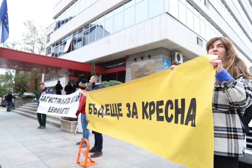 Протест пред районното министерство против довършването на автомагистрала " Струма " през Кресненското дефиле. Те упорстват страната да не продължи градежа по план, който може да докара до наказания от Брюксел.