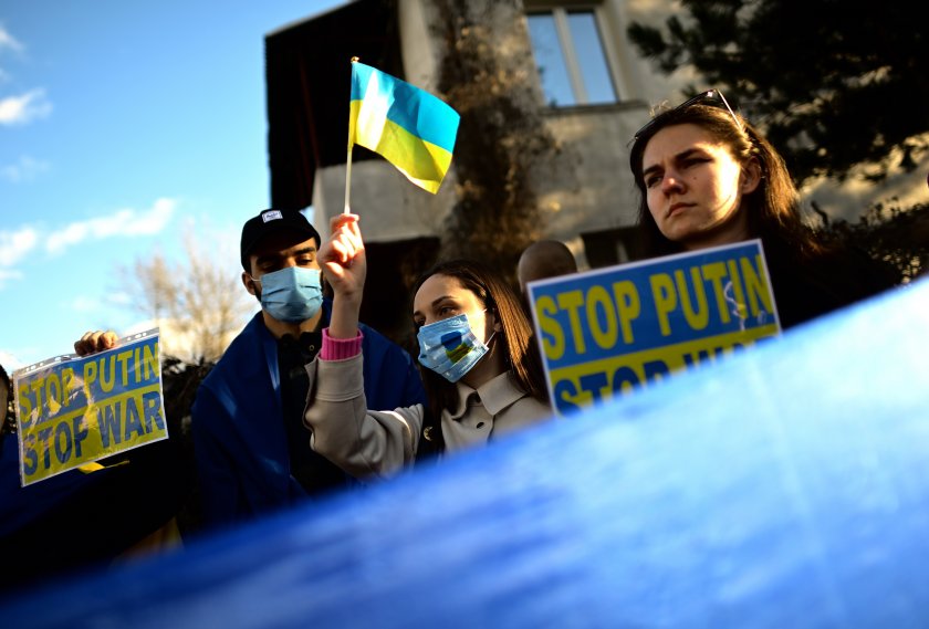 На митинга не бяха само хора, които имат родственици в Украйна, само че и българи, които обявиха, че са тук в символ на митинг, че сме върнали часовника с един век обратно.
