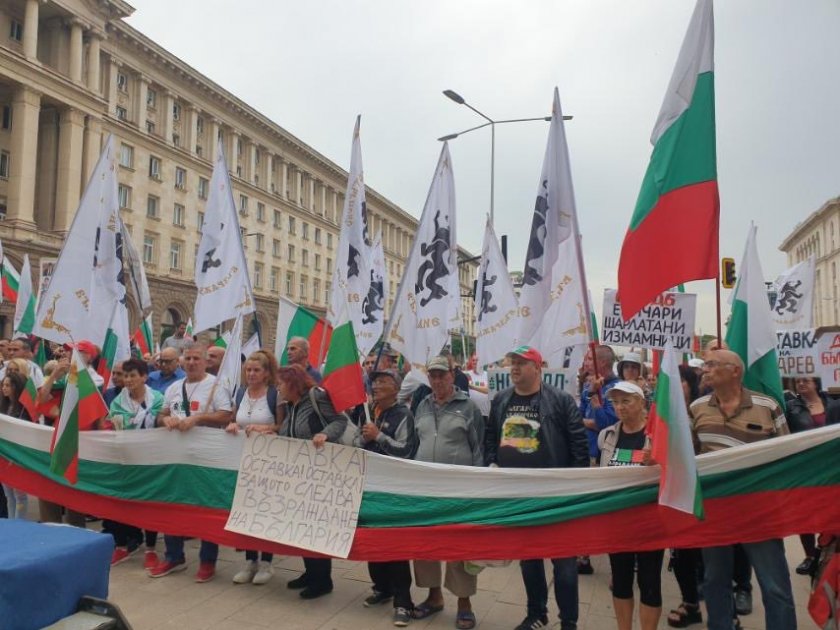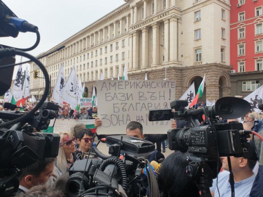 Събралите се не повече от 300 симпатизанти на партията желаят оставката на държавното управление, както и България да не изпраща военна помощ на Украйна. " Долу сглобката " скандират протестиращите.