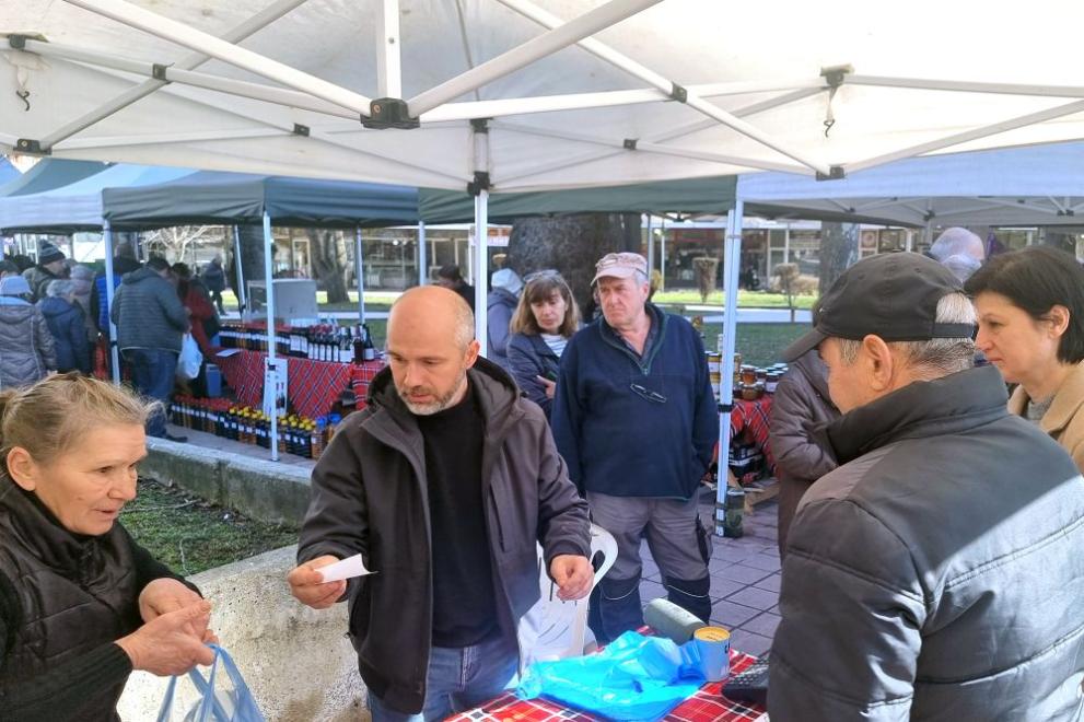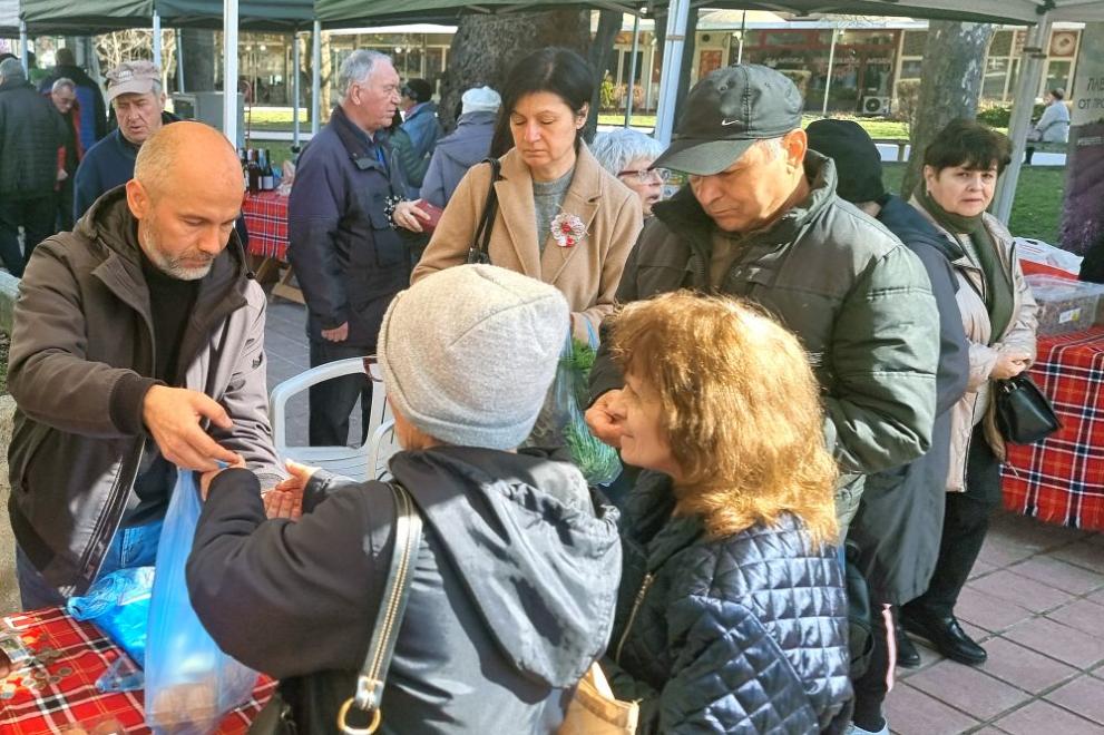 Той продава на фермерския пазар в града продукцията си на по-ниска цена в сравнение с е по магазините.