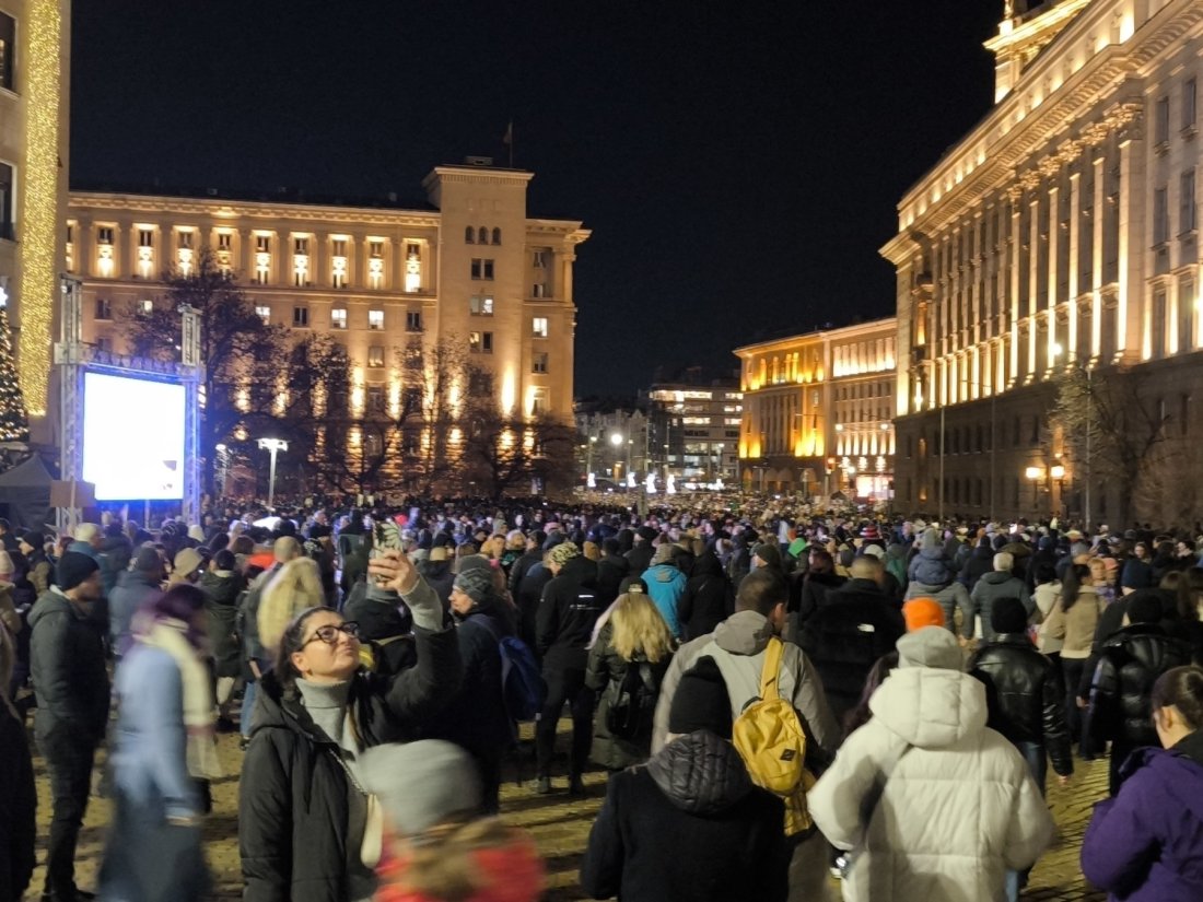 Цялото пространство в Триъгълника на властта е изпълнено с хора, а за протестиращите, които са към Президентството, а също и към Българската национална банка, има подложен и втори спомагателен екран, с цел да може да виждат какво се случва на сцената и с цел да могат да чуват представителите на сцената.