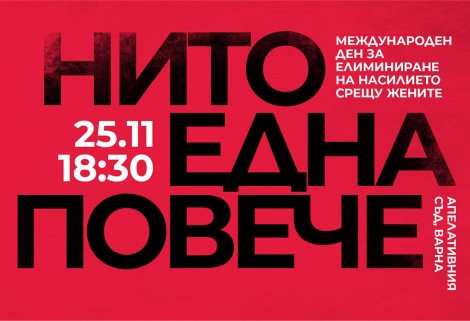 Протест против насилието над дами под надпис " Нито една повече! " ще организира на следващия ден (25 ноевмри) от 18.30 ч. пред Съдебната палата във Варна.
