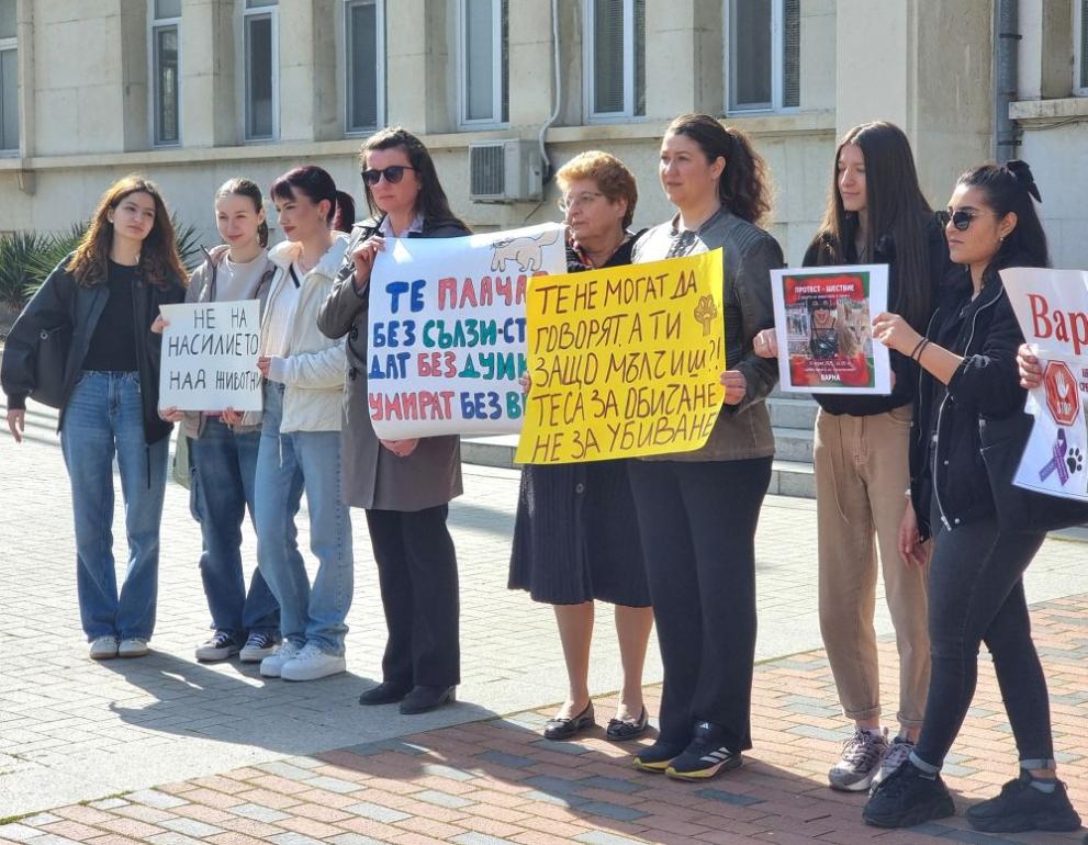 Протест против насилието над животни се организира пред постройката на Съдебната палата на площад „ Независимост “ във Варна.