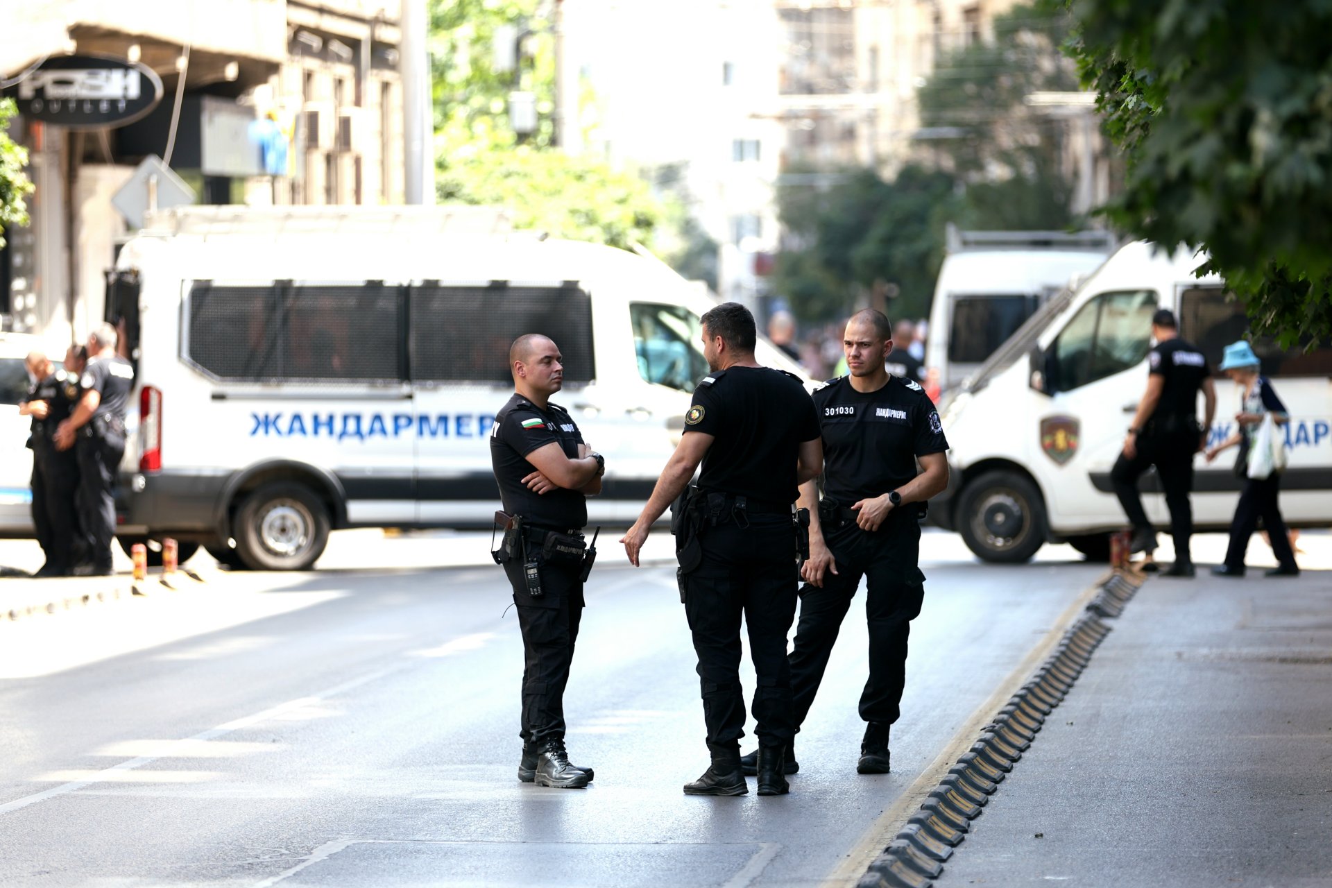 Полиция е завардила столичната улица " Раковски ", където се намира постройката на Европейска комисия у нас.
