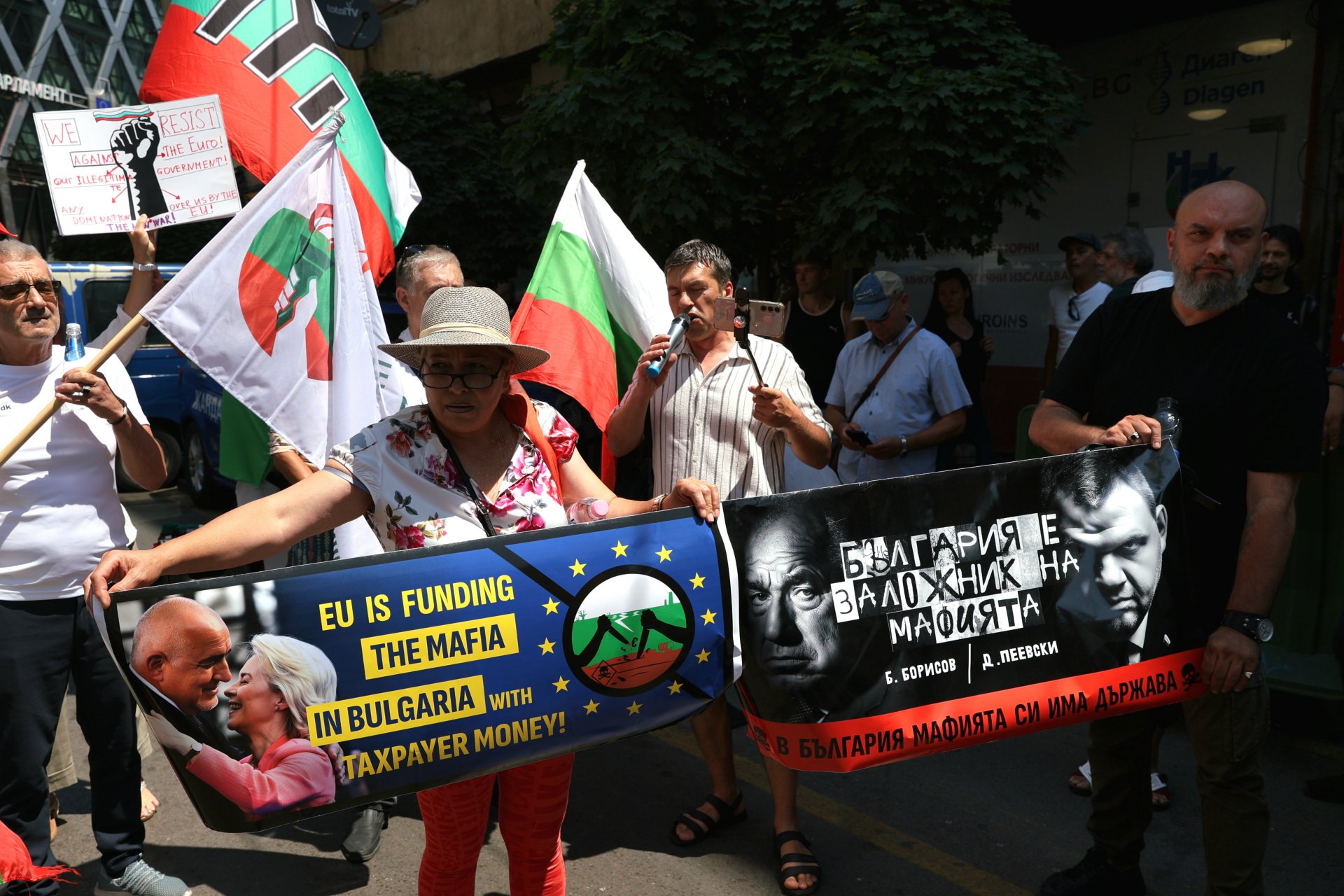 Протест срещу въвеждането на еврото пред сградата на ЕК в София