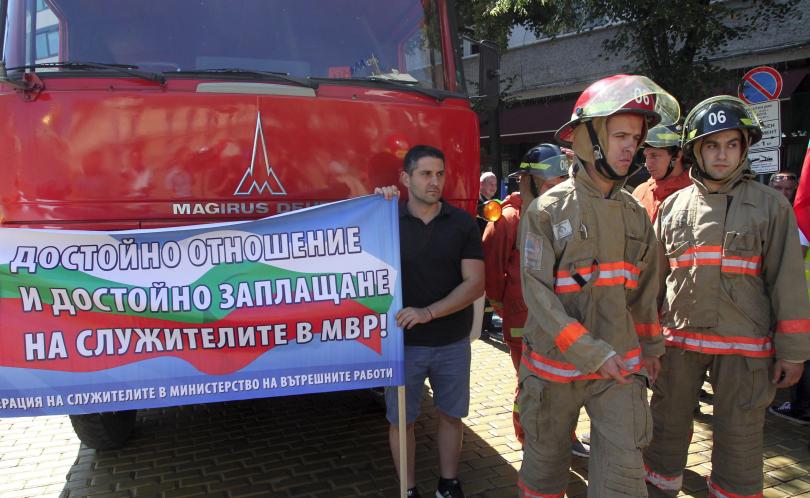 Протестът на служители на реда и пожарникари в столицата се състоя на площад Народно заседание. За да покажат неприятните условия на труд и остарялата екипировка пожарникарите направиха къса проява на избавителна интервенция.