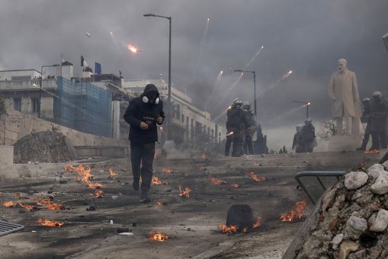 Сблъсъци и вълнения в централната част на Атина. Снимки: АП/БТА